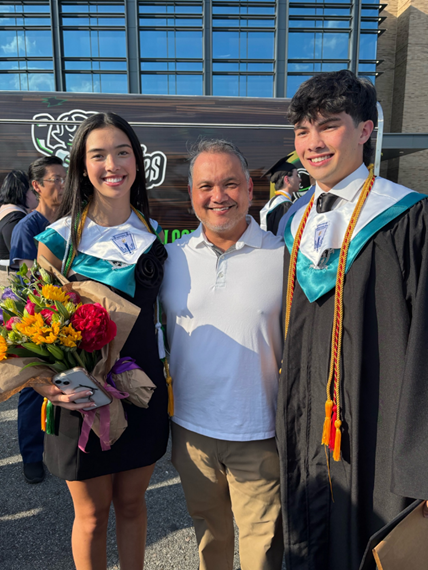PBA member Michael Zaragoza with his children, Adeline and Hudson, at their graduation