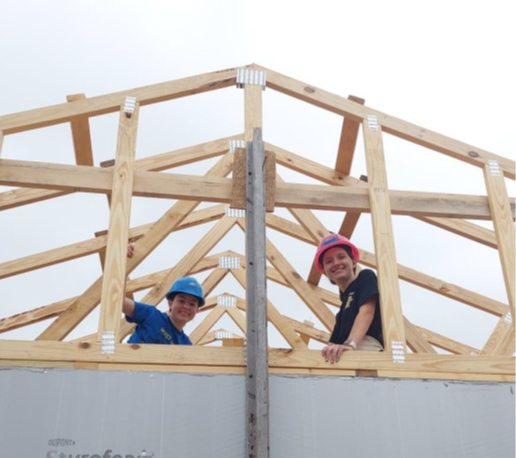 Hailey and her friend help reinforce the roof in a Habitat for Humanity build.