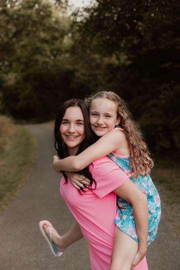 Vaylee Olack carries her younger sister, Lexza