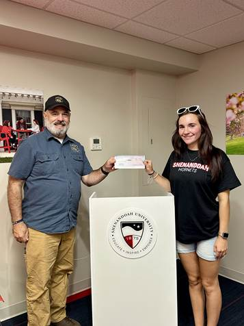 VAPBA staff representative Rich Goszka presents a scholarship check to Vaylee Olack